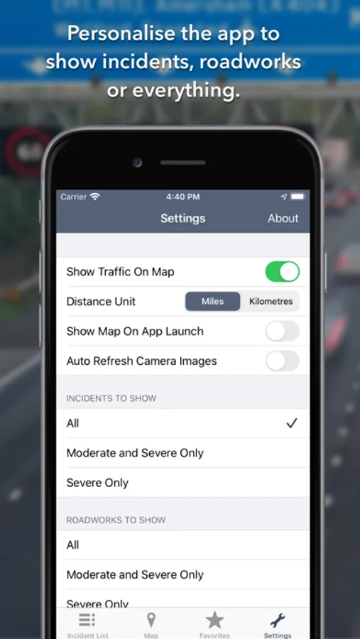 - Save your favourite cameras for quick access to see how clear/congested your usual routes are.