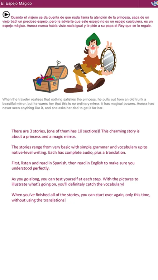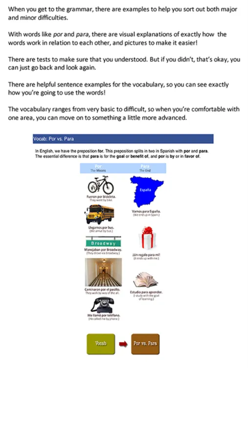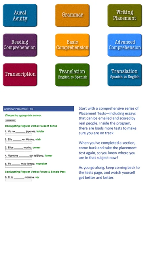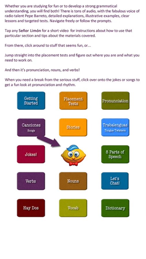 Spanish A:Z is a comprehensive tour of the language via grammar, pronunciation, vocabulary, songs, stories, and jokes. There is tons of model audio by a well-known Mexican-American recording artist, including tests, exercises, and lessons. Each section has a short intro video to explain how best to explore. You can either follow a structured path or browse around as you like.