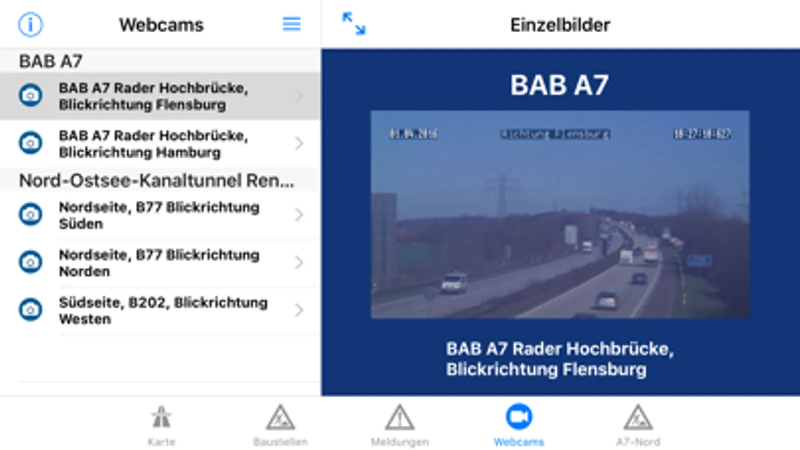 In addition, direct transfers of video cameras and webcams, located on major transport links in Schleswig-Holstein are provided. Currently you can see photographs of the webcam Rader viaduct and the Kiel Canal tunnel Rendsburg.