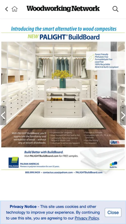 Woodworking Network is the multimedia toolkit for professional woodworkers and closets and organized storage professionals. More than 100,000 executives rely on Woodworking Network’s publications, newsletters, videos, digital assets, audience recognition programs, data and events to stay informed and connected. FDMC serves the information needs of manufacturers of furniture, displays, millwork, cabinetry and other wood products in North America. Closets & Organized Storage is the only publication in existence fully dedicated to this growing $13 billion market, which includes manufacturers, retailers, designers and franchise dealers of commercial and residential closets, storage, garage and other custom organized storage products.