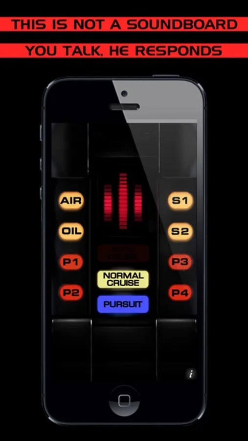 Attention: this is not a soundboard. Now, you can talk to K.I.T.T. and he'll answer you in his own voice! The fun and personality of K.I.T.T. lives on in this never-before-seen app! Seeing (and hearing) is believing.