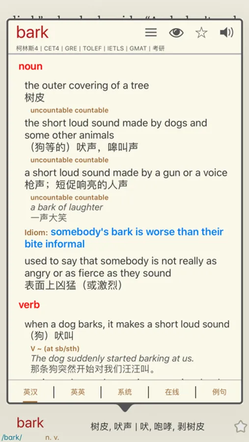 ● 分級詞頻: 基於權威的Collins詞頻分級, 不同難度的詞使用不同的顏色標記, 難詞和重點詞匯壹目了然