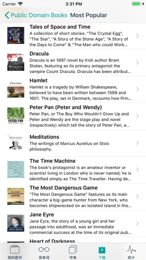 ● 圖書源,可從freebooks, Gutenberg等圖書源下載免費書籍