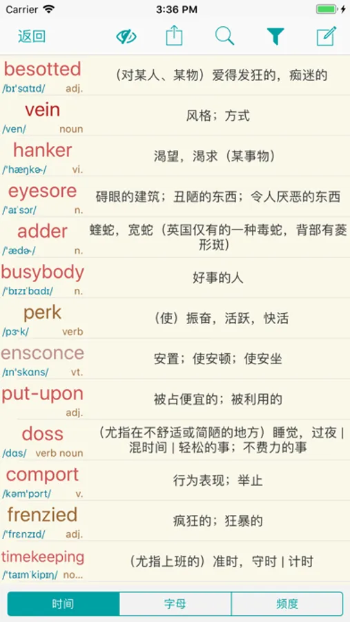 ● 分類詞頻:可以標註大學4級、6級,GRE、托福等詞匯,方便強化學習