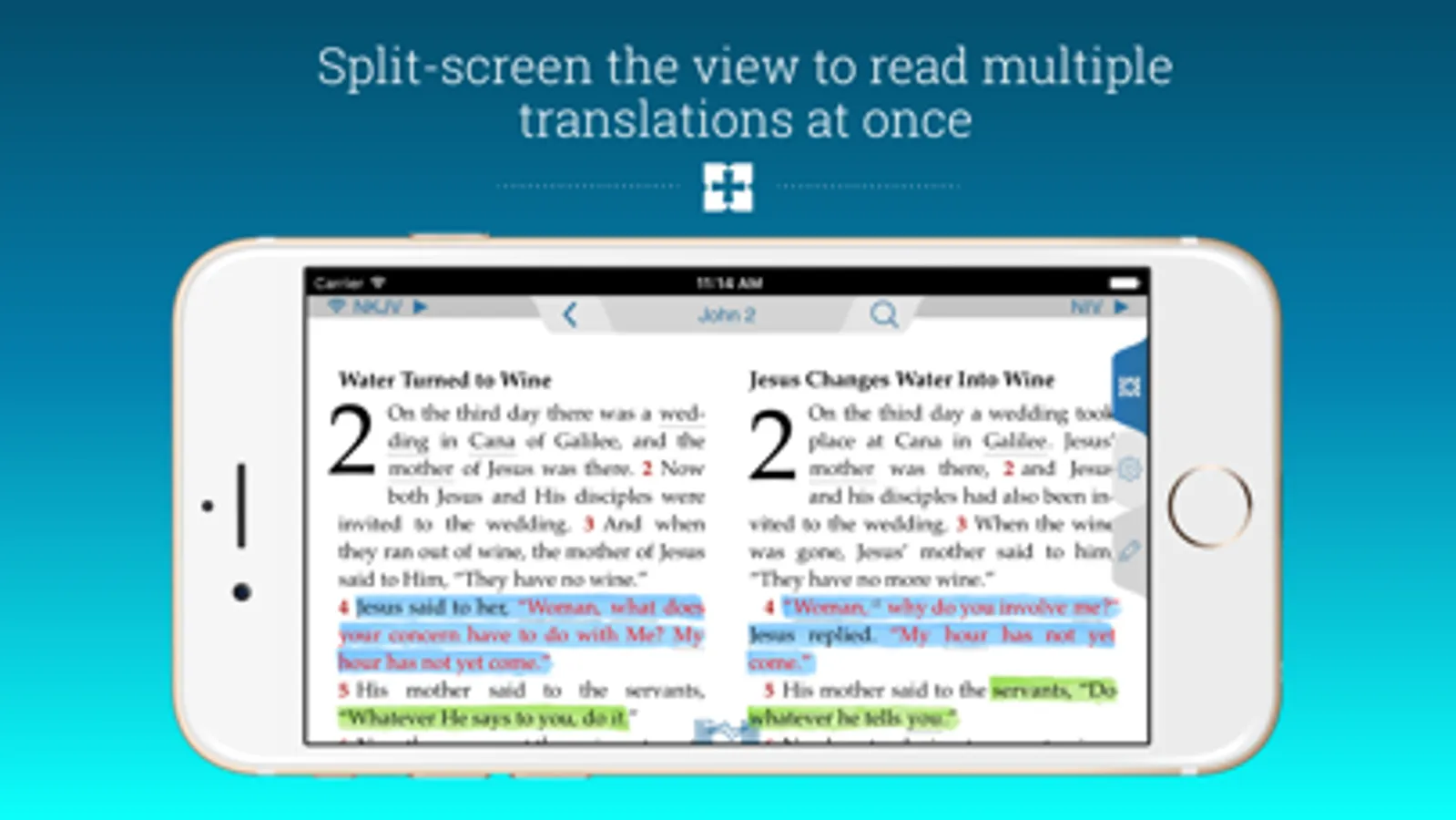 Plus, leverage the Mode Switcher to get deep into the Bible with Study Mode, or focus on the text in Reading Mode. It's your choice. Page turns are animated in Reading Mode with icons appearing where additional content is available.