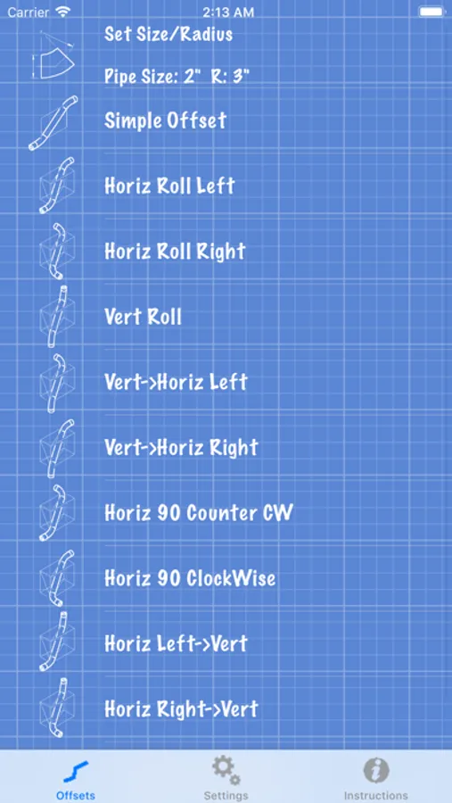 Piping Offsets have never been easier to calculate. The offset calculator is very intuitive and flexible: the graphical menu is provided to easily select the type of offset you wish to compute. User supplies any three sides and/or angles combination(s).