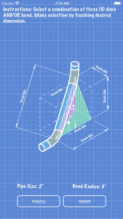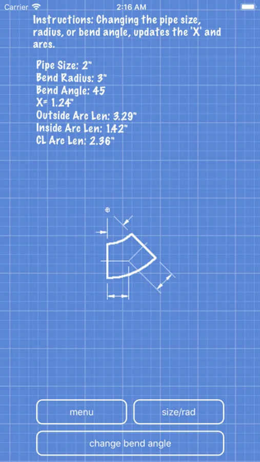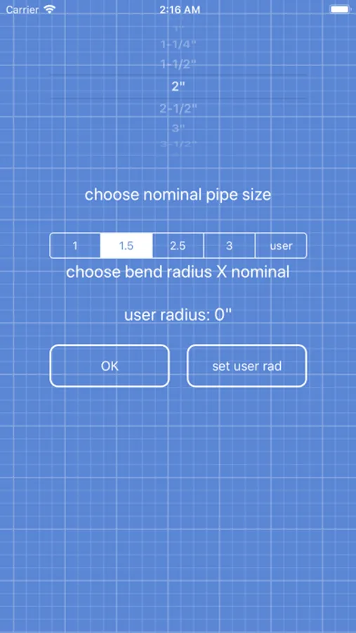 User can select 1/4" through 48" pipe sizes, preset bend or ell radius, or the user can also choose a fixed user input numerical radius for those unusual bend radius requirements.