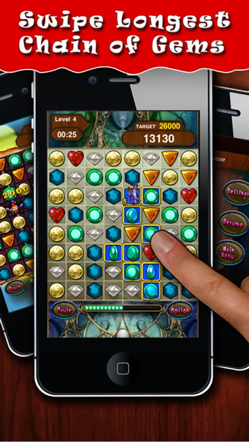 - In each swipe action, Longer the chain of gems, higher the score you will get.