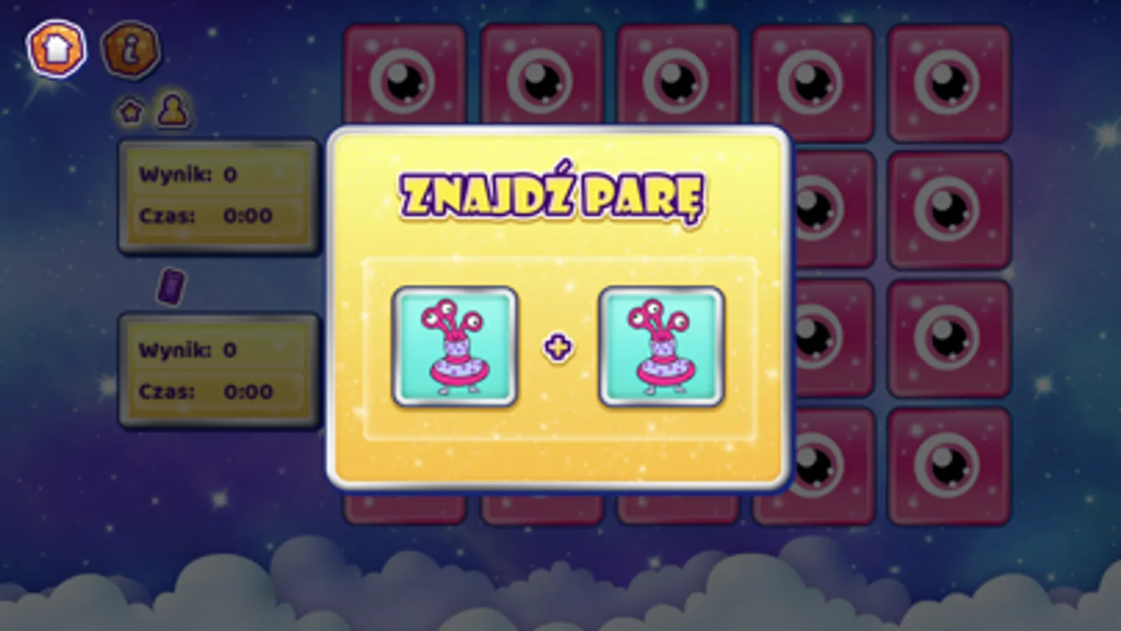 Zapamiętaj ich położenie i połącz w pary w jak najkrótszym czasie! Im szybciej to zrobisz, tym więcej punktów zgromadzisz.