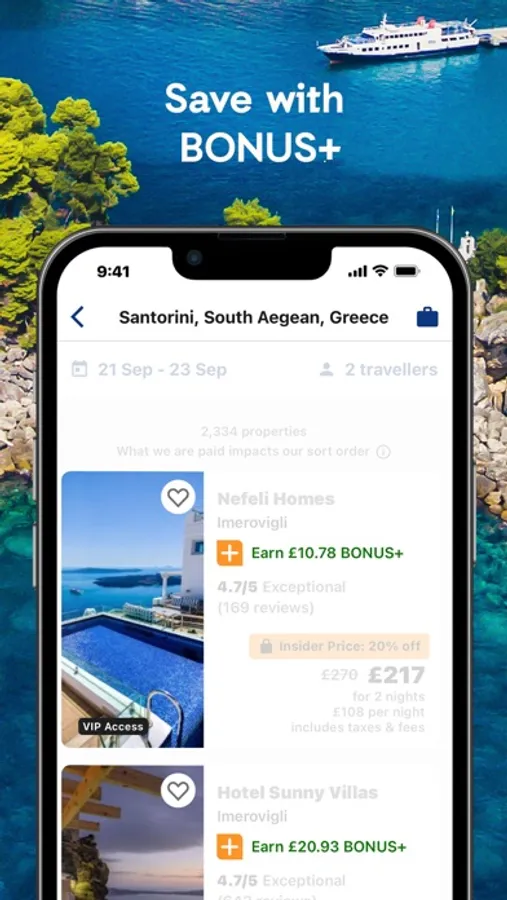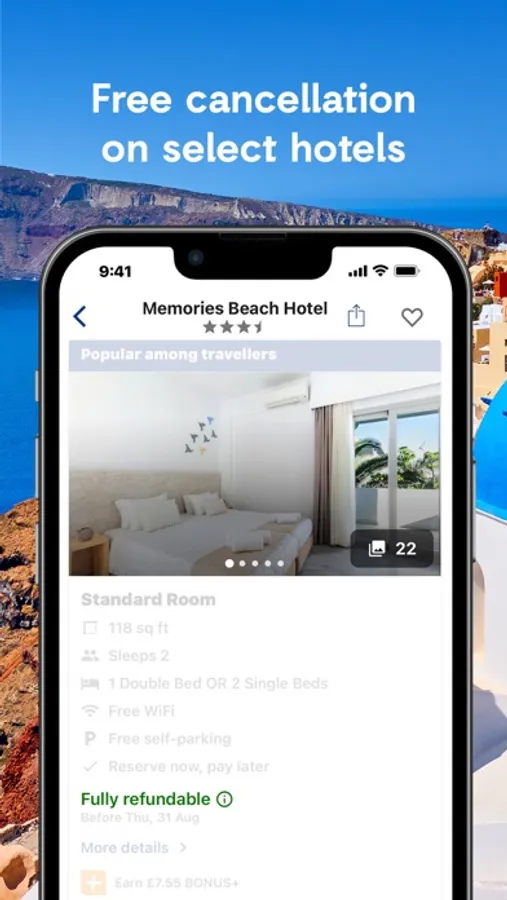 Join ebookers’ award-winning rewards program, BONUS+, and start earning BONUS+ on your flight tickets and hotel bookings that you can instantly redeem on hotels in the app – app bookers earn 5% on hotels, 3% on Flight + Hotel and 2% on air! You can also find cheap last-minute hotel rooms nearby and save up to 30% on your reservations with great mobile exclusive deals!