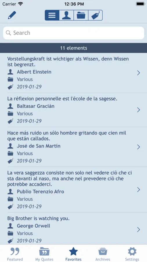 Create your list of favorites quotes and organize them by folders and tags.