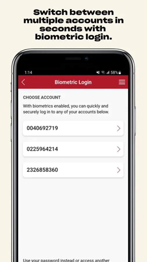 If your phone supports TouchID (find in Settings), you can quickly access your accounts using just your fingerprint. Use 3D-Touch (long press on the app icon) to go directly to transfers, bill payments or Vancity Mobile Deposit™.