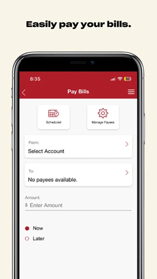 Pay your bills easily and on time by scheduling in advance. Manage your bill payees from within the app.
