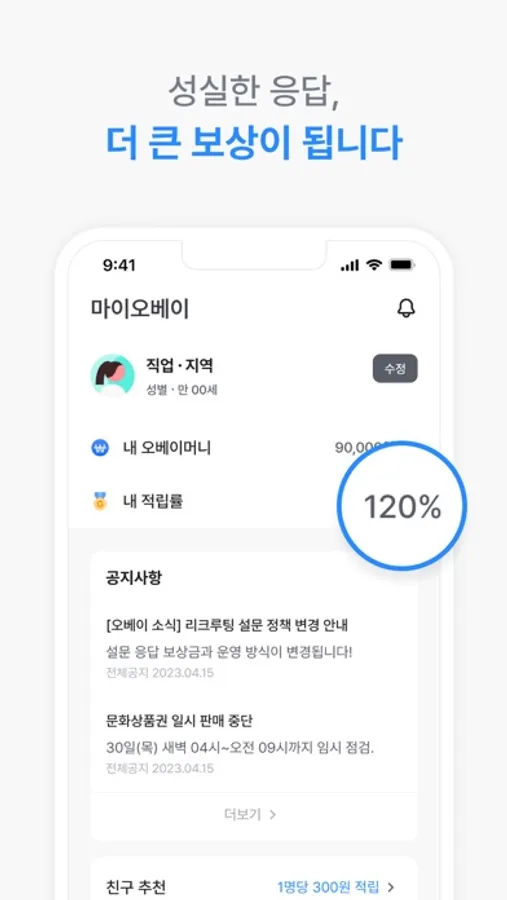You can collect a reward cash of 300 Korean Won once your friend creates an account and fills out a basic survey.