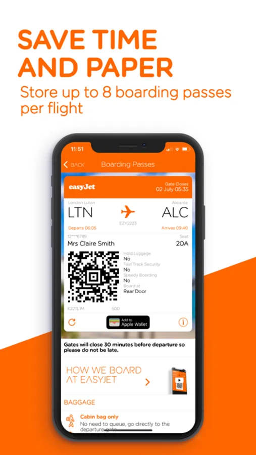 MOBILE BOARDING PASSES – Use your mobile boarding pass to travel through the airport quickly, speed up boarding and reduce paper waste. You can store up to eight boarding passes per flight, which will be available offline, so you'll not need a data connection. For even more convenience, you can also save your boarding passes to Apple Wallet. Visit https://www.easyjet.com/en/mobile-app/mobile-boarding-passes for more details.