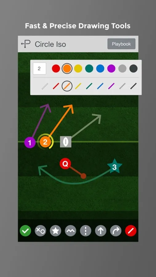 • Identify an intended receiver, choose smooth or straight lines, show zigzag lines for pre-snap motion, show dotted lines for pitch & pass and draw zone defense responsibilities.