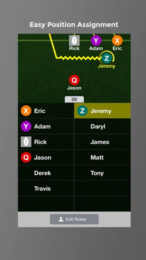 • Enter player names in the roster panel & assign positions.