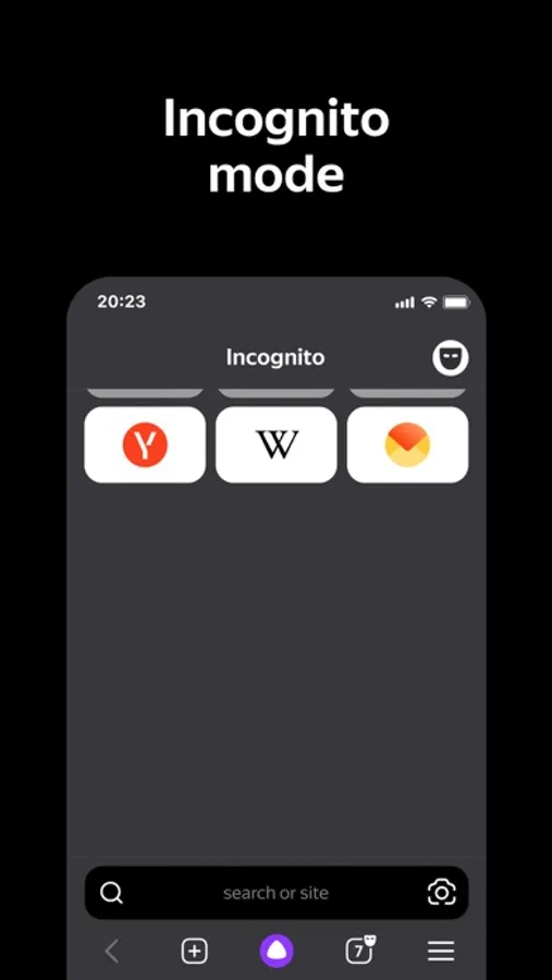 Surf the web in private using Incognito Mode — Yandex Browser will not keep track of your passwords, search queries, or browsing history in this mode.