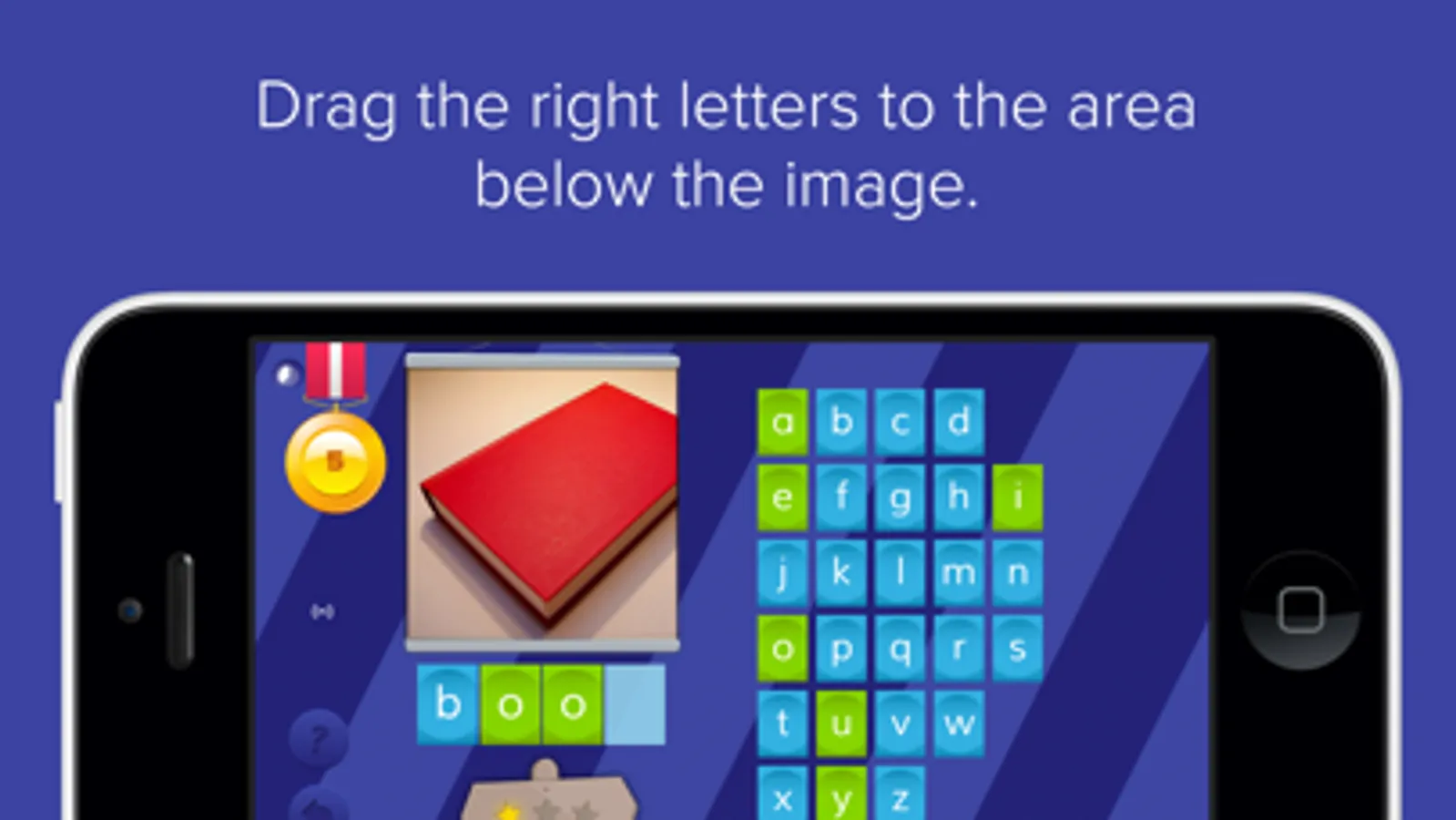 The purpose of the game is to learn spelling by dragging letters into the right position below the image. Super Spelling helps in various ways. Use phonics or set letter- and colorhelp corresponding to your own level.