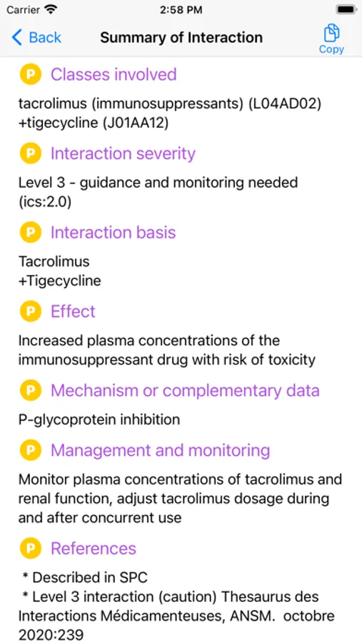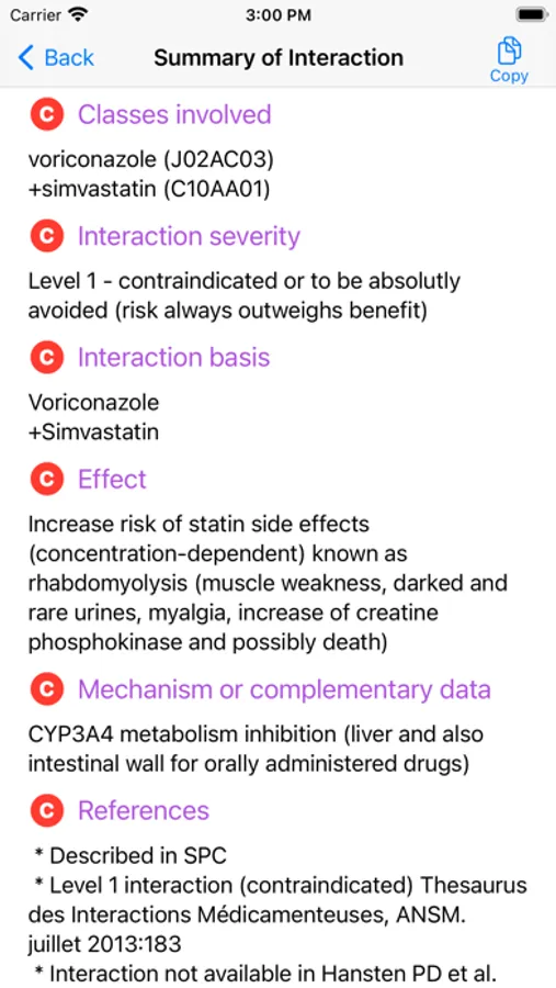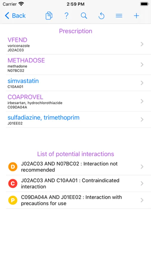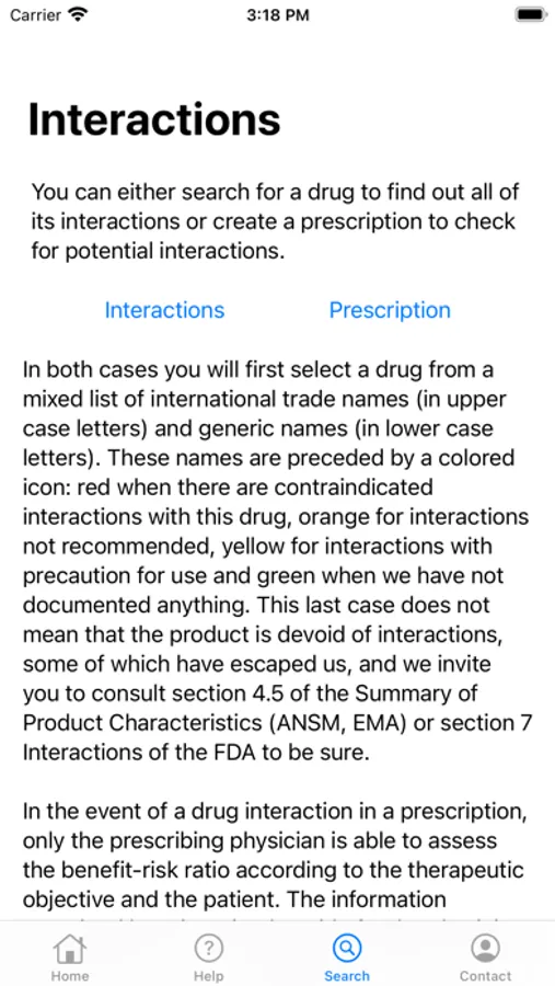 This app provides referenced information about drug interactions. On the one hand, you can get information about all interactions with a given medicine, and on the other hand, you can create and verify a prescription. The information is provided in the form of a memo including the level of dangerousness, the effect, the mechanism, the risk factors, the action to be taken and the bibliographical references. Substitution options with a nearby drug are also offered.