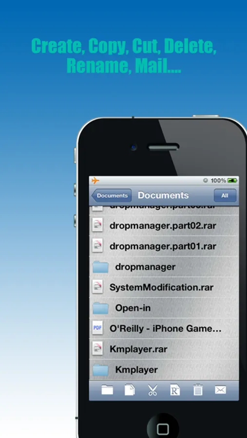 1. You can open the RAR, Zip, CBR files from mail, safari or some other apps that support open-in feature, and extract it(Supports extracting password protected RAR file, multi-volume RAR files); Also allows other apps to open local files (Just tap and hold the file’s icon, then the “Open-in” menu will appear).