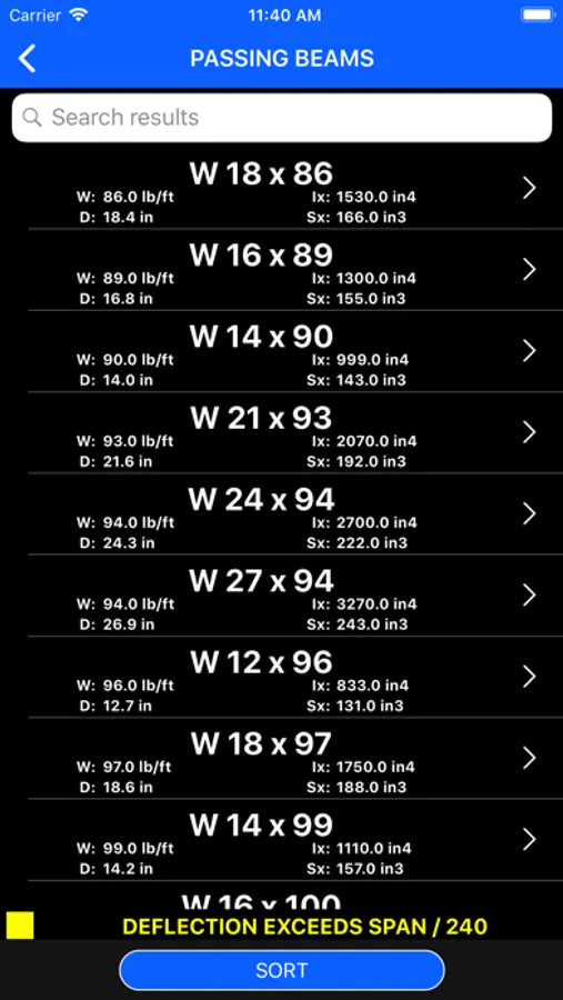 Steel Beams Bulk Checker is a fast & easy to use parametric beam checker. Forget the trial and error, no need to select specific beams properties or designations & test one by one for criteria. Here you only need to enter the problem parameters & type of section you need & the app will find all the sections that meet shear, bending & deflection criteria! The results can be sorted by weight, depth, inertia, moduli.