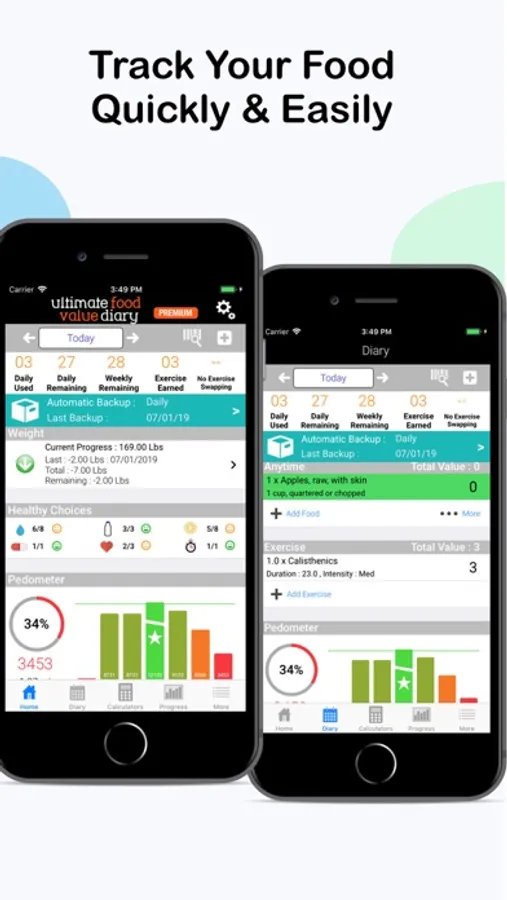 √ Pedometer support - Record your steps on your fitness band or smart watch and have the app automatically convert them to exercise earned within the app for all plans - syncs with Fitbit & Apple Health. (Premium)