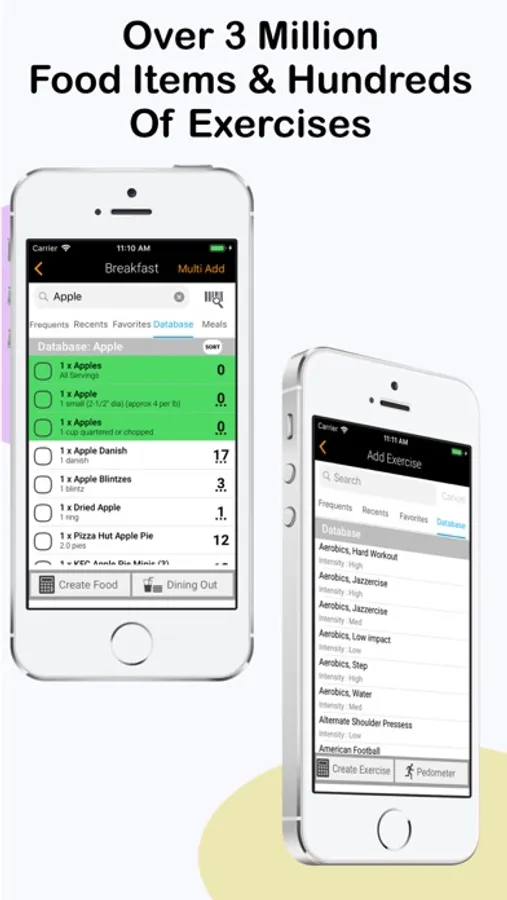 √ Built in food & exercise databases with additional online Food & Restaurant with millions of food and restaurant items.
