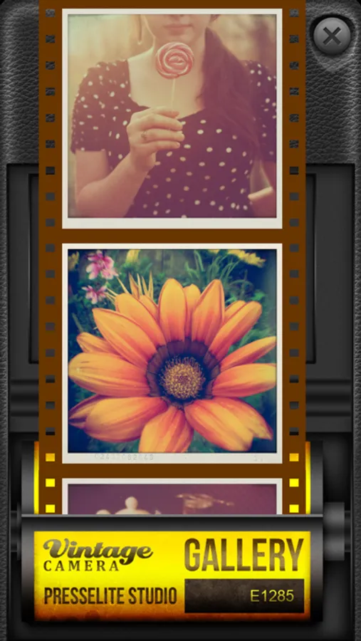 ◉ The gallery, in a roll of film format, saves and stores all the photos you take using the application.