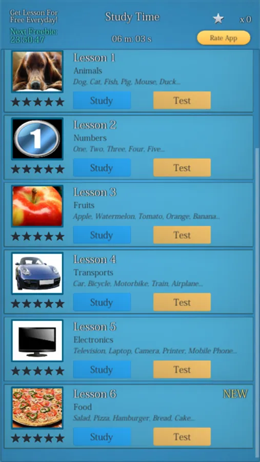 - Test mode to test your mastery of the lesson. A summary with rating will be given after the test