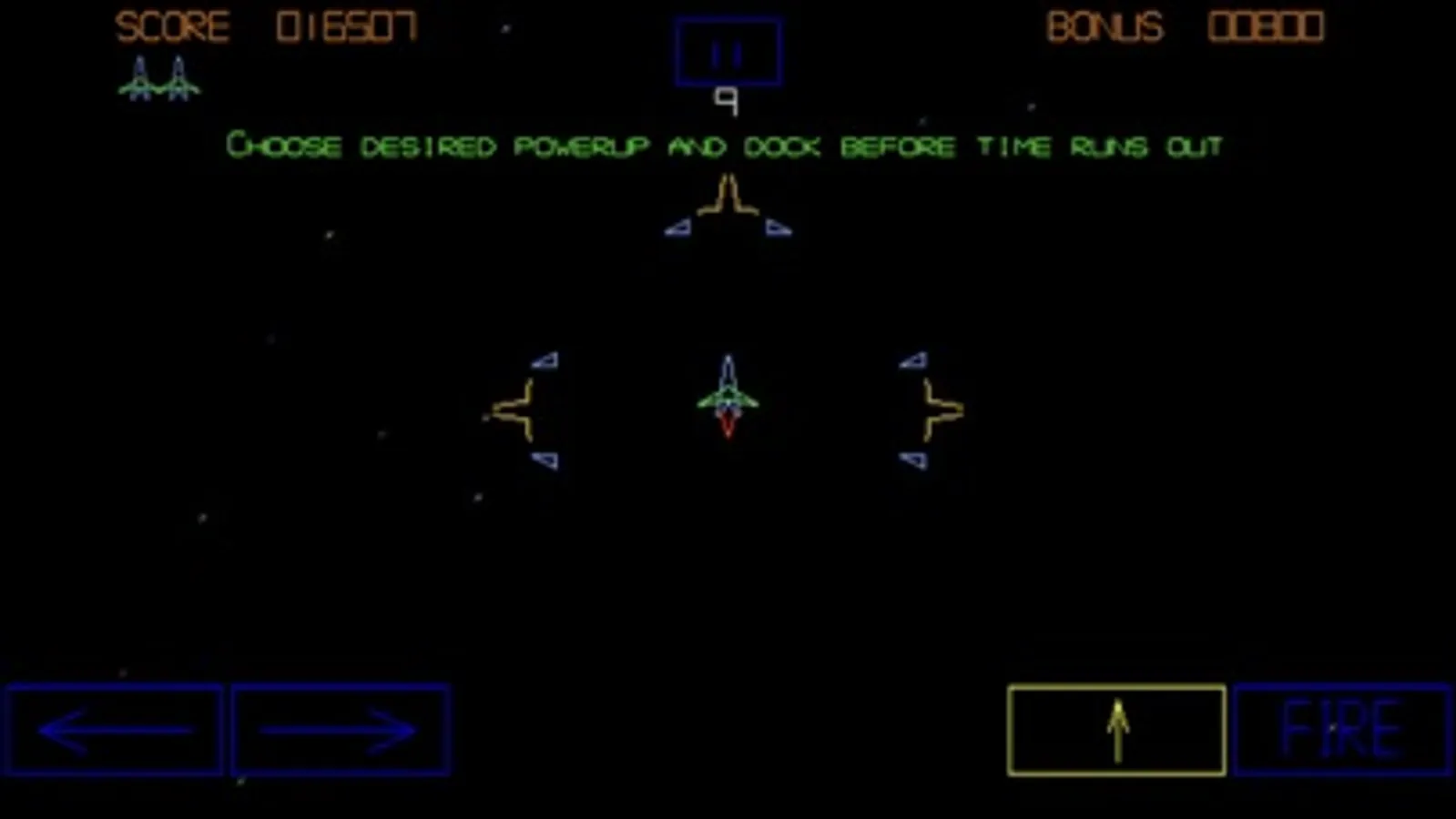 If you clear all of the world's timed levels and beat the bonus level, you will have a chance to dock with a power-up and claim your bonus points. Don't miss out on your chance for the subsequent levels hold enemies that become much faster, more numerous, and more aggressive with their attacks. Failure to dock with a power-up will lead to a far more punishing experience on the subsequent levels.