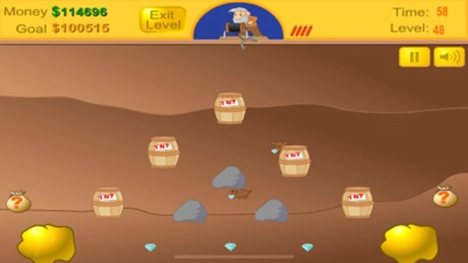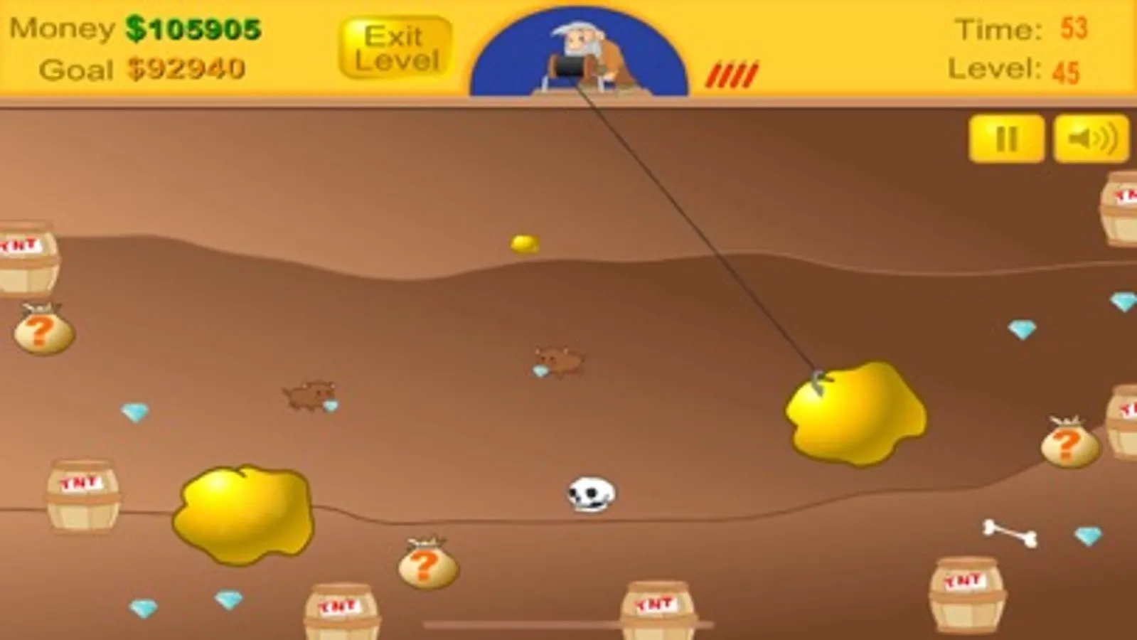 * Aim on the gold while the hook swings, and click on the screen to release the hook.