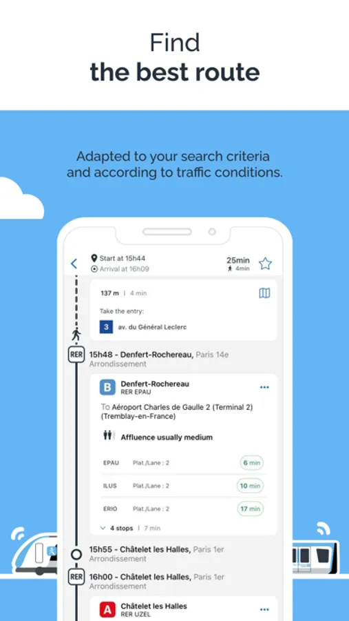 Reloading of your Navigo pass, routes, real-time timetables, traffic info. Vianavigo is evolving and becoming Île-de-France Mobilités to better support you on a daily basis: train, RER, metro, tram, bus, car, bicycle, Vélib', carpooling, carsharing... Find the essential tools and information for organizing your travel in Île-de-France. Together, let's travel with ease.