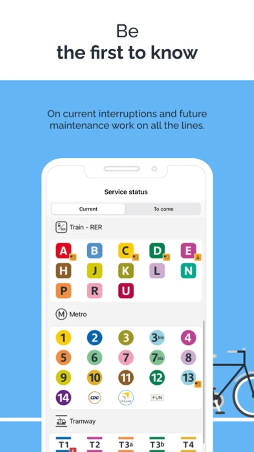 - Be alerted in the event of disruptions on your favorite lines and routes
