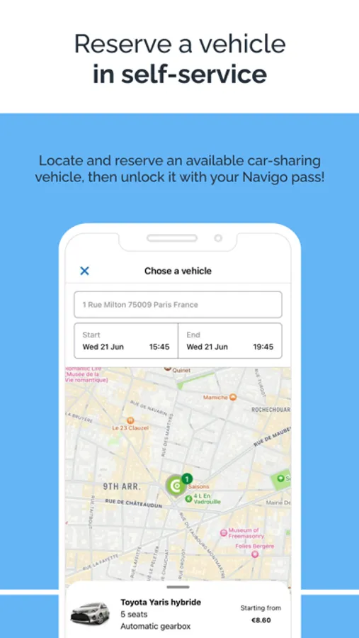 - Book your carpooling and/or carsharing journeys, in partnership with the main French players