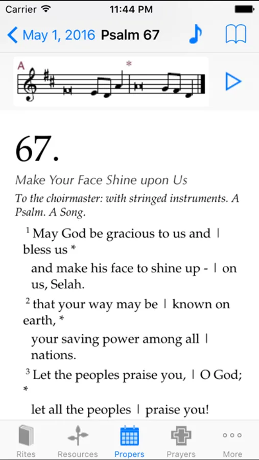 * Psalms with optional chant marks and 8 music and audio tones for singing