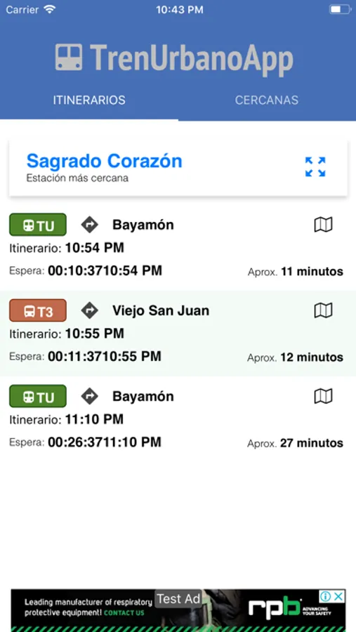 No esperes más en el la parada. Coteja rápidamente los tiempos del Tren Urbano, Metrobús y Acuaexpreso de Puerto Rico. Obtén estimados de tiempos de espera de la AMA y rastrea los vehiculos en el mapa con el Mapa GPS.