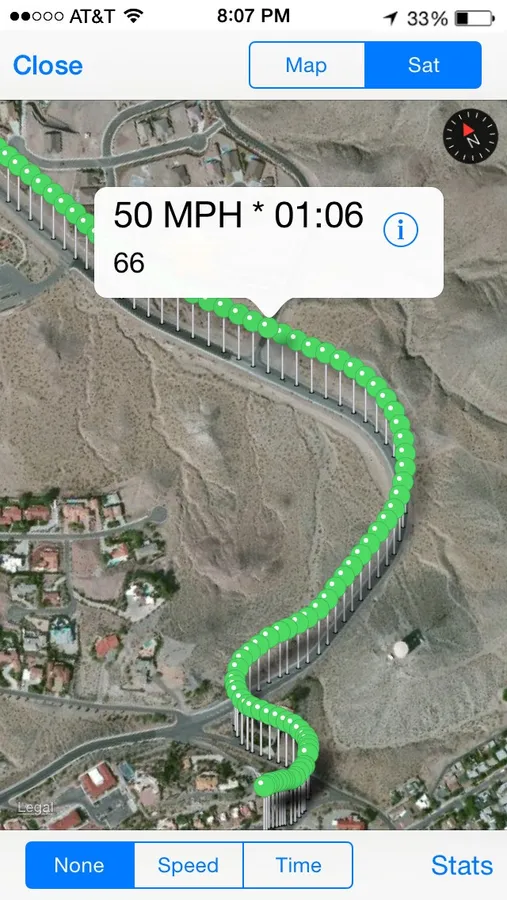 ~ Dropped pins throughout your entire run show an accurate report of your max speed, average speed, distance, and time.