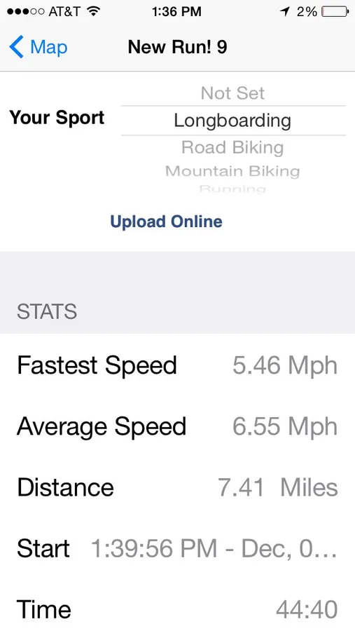 ~ Manual Stop: if you choose this option, it also only starts recording once you start moving, but when you come to a complete stop, it will pause (like if you ate it half way while bombing that hill) and then will continue recording once you start again. Tap 'Finish' to end and save your route.