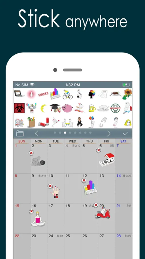 Three. It offers ultimate customization options. You get to easily set custom color for event and reminder, and change the font size and style in the notes and different views. There is also the option to add stickers to the month view.