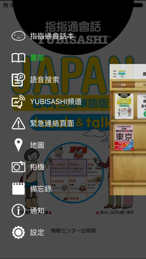 突破510萬本的人氣系列暢銷書籍「指指通旅遊會話本」所推出的APP,不僅沿用了只要讓對方看,動動手指就能夠溝通的會話工具「指指通旅遊會話本」的基本功能外,並新增了免費試閱、直接從「書架」上選購符合自己需求的書籍,以及由台灣特派員來介紹日本相關旅遊資訊的「YUBISASHI頻道」、可搜索書籍中的片語的「語音搜索」、「地圖」、「相機」、「便條紙」等功能,讓你到日本旅遊時可暢行無阻的必備旅遊會話APP標準版。