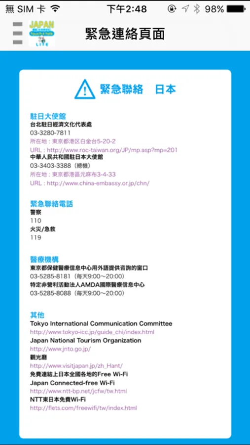 匯整在日各國大使館、警察局、醫院等緊急聯系方式,以備不時之需。