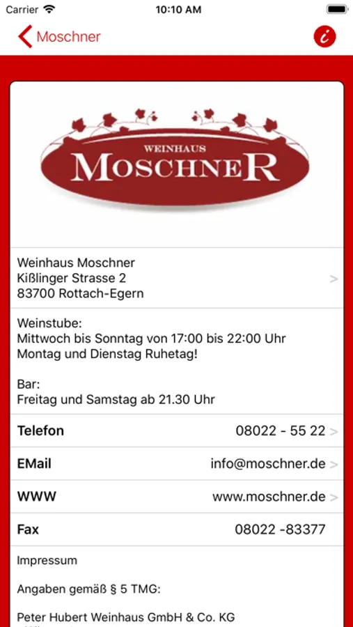 Damit Sie nie mehr ein Highlight verpassen, bieten wir in der neuen Moschner-App stets aktuelle Termine, News, Speise- und Getränkekarten, Tischreservierung mit Sofort-Bestätigung, sowie Bilder und weitere Informationen.