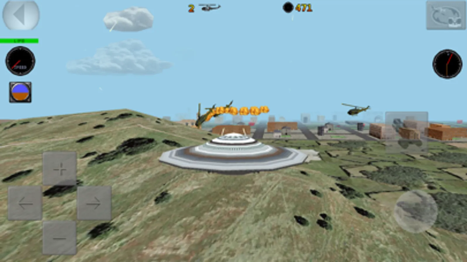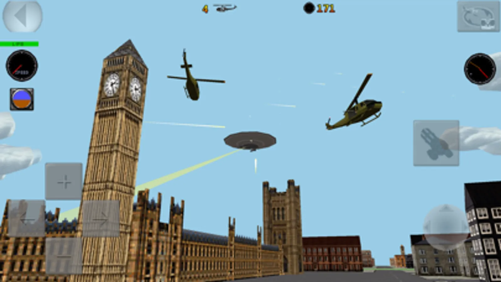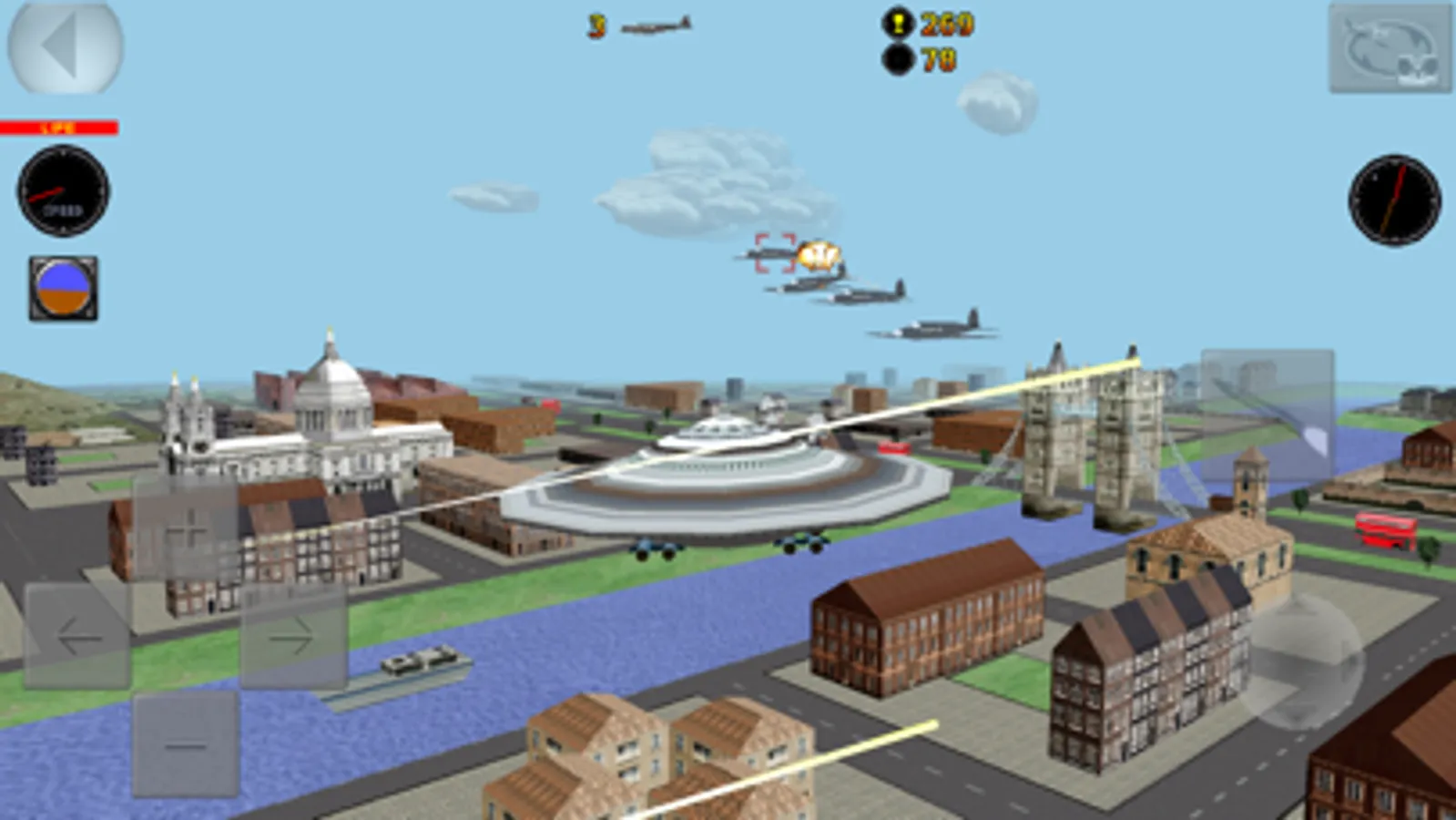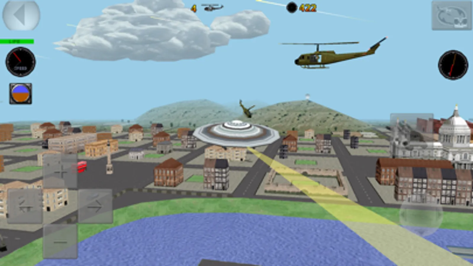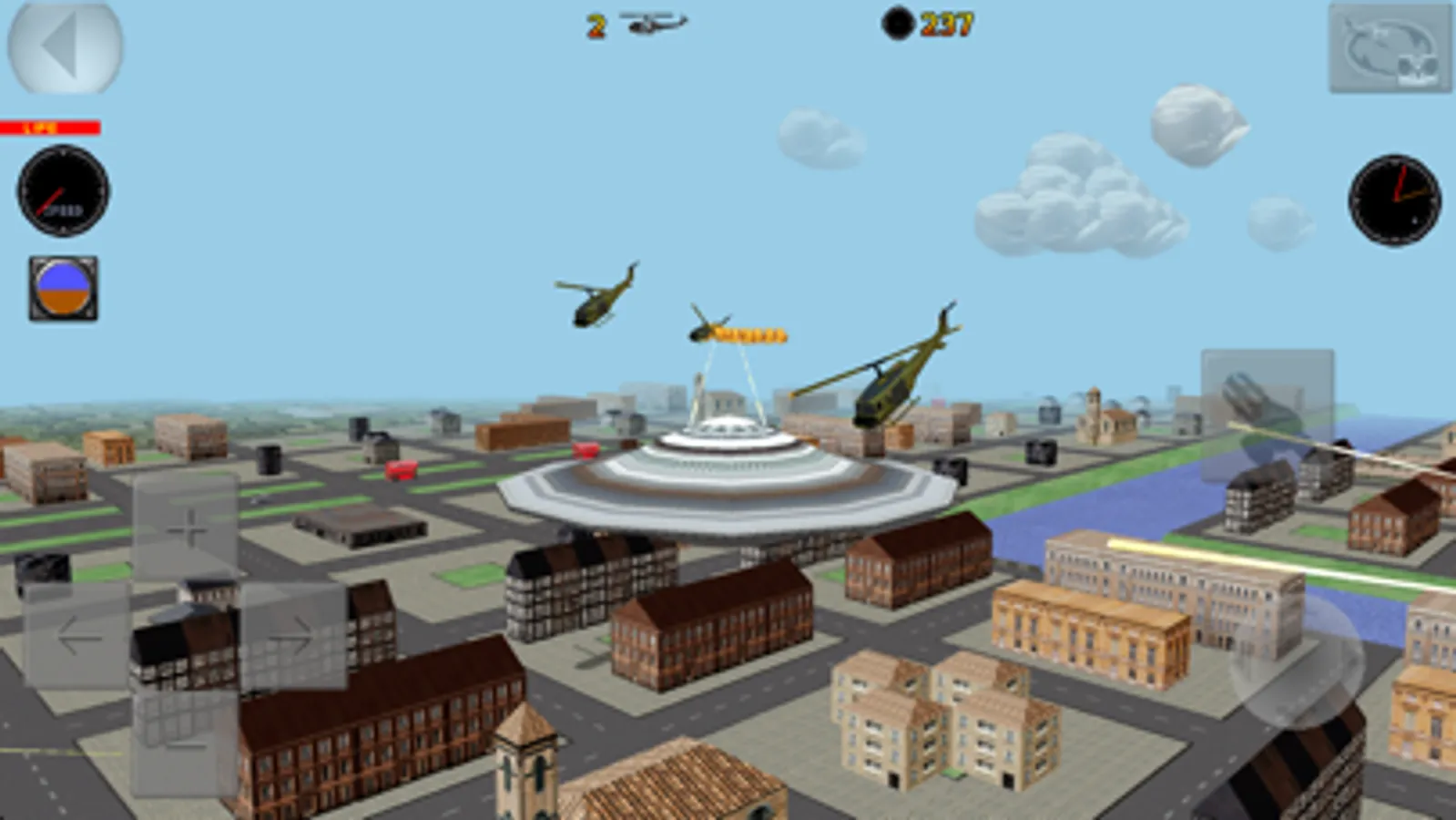 Fly over the skies of the city with a UFO, in full 3D, completing mission objectives.