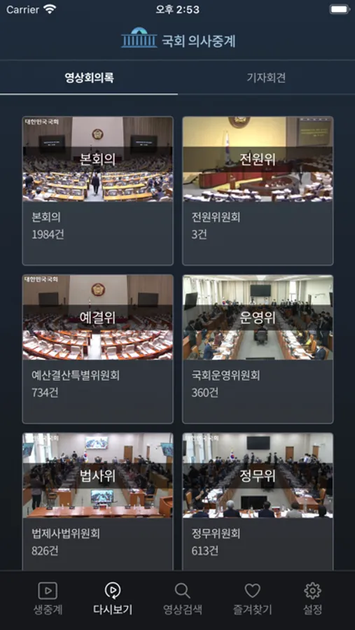시청가능한 회의 -본회의, 예결위, 상임위(정보위 제외), 특별위, 국정감사, 청문회, 공청회, 기자회견 등 동시 22개 채널