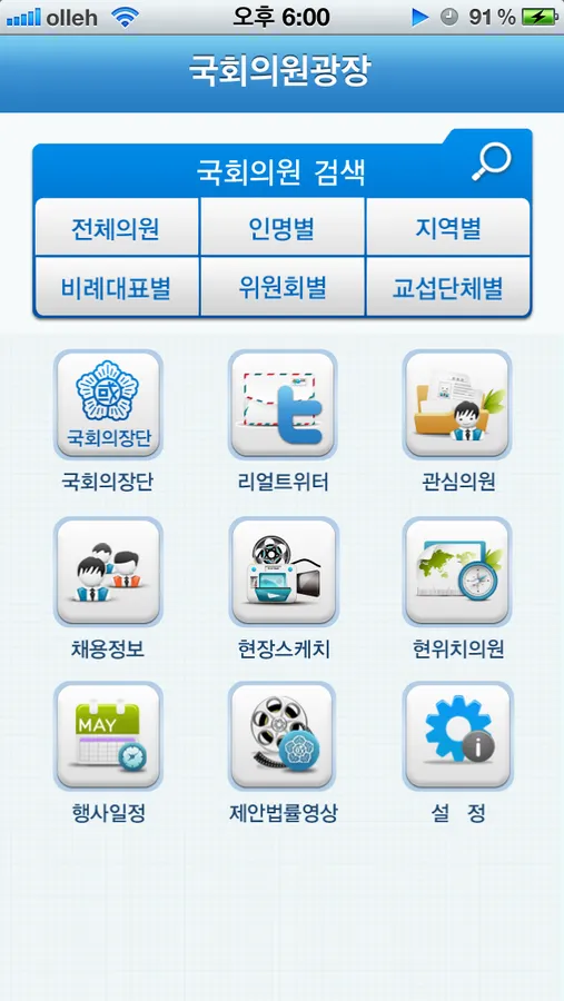 The Members Plaza App provides detailed information on Members. Users can search by several different criteria, for instance, by names, electoral districts, committees, and negotiating groups. They can gain detailed information on individual members, such as assigned committees, number of terms, profiles, and assistants and advisors. In addition, the application allows users to search for vacancies in Members’ offices, read twits posted by Members, register Members of interest, and find out a Member representing their current location.