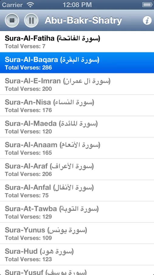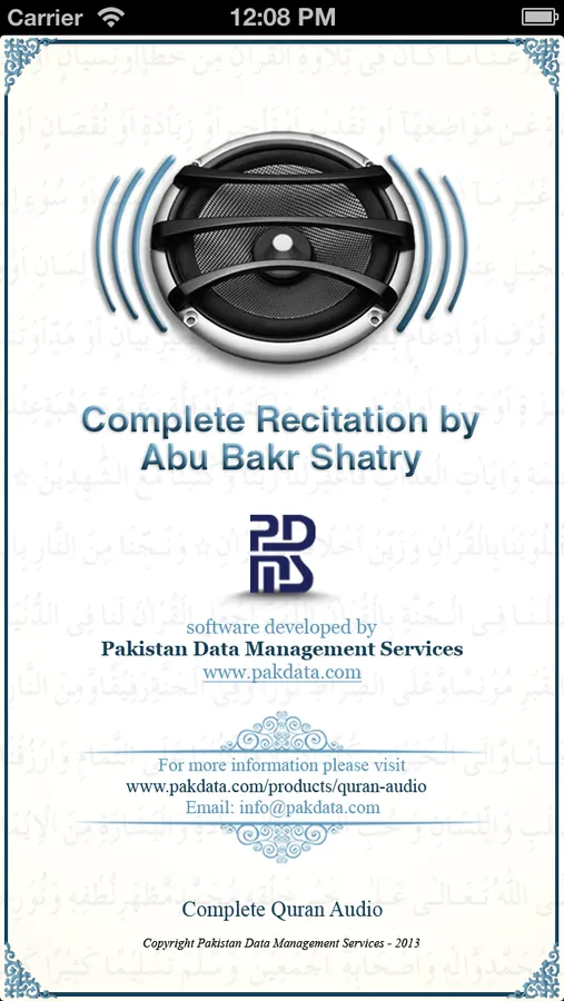 Complete Quran recitation audio of Sheikh Abu Bakr Al Shatry. No further download needed after purchasing the full upgrade. Also supports background audio and remote events.