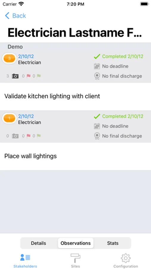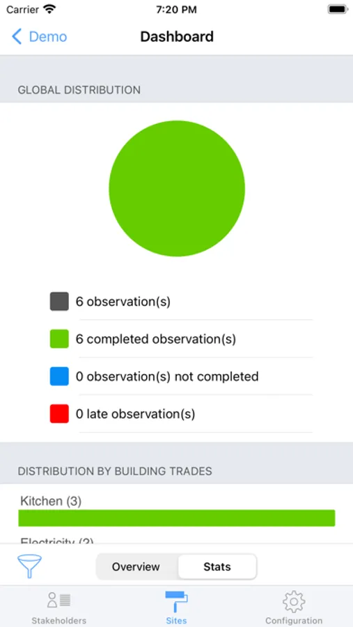 - Quick overview of observations (punch/snag list items) classified by stakeholder.