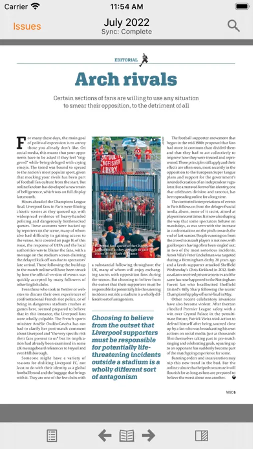 The magazine has become recognised as a source of informed comment on all aspects of the game and will appeal to anyone who cares about football at all levels, not just at the top of the English Premier League. This app includes extra content not available in the printed issue.