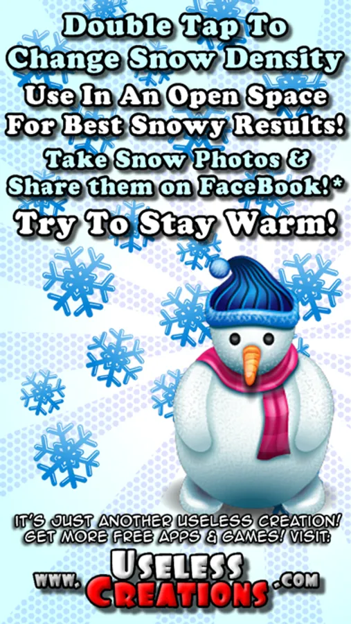 - Select your favourite type of snow flake from the Menu. Now you can choose for yourself how realist, or cartoony, your Pocket Snow Storm is!